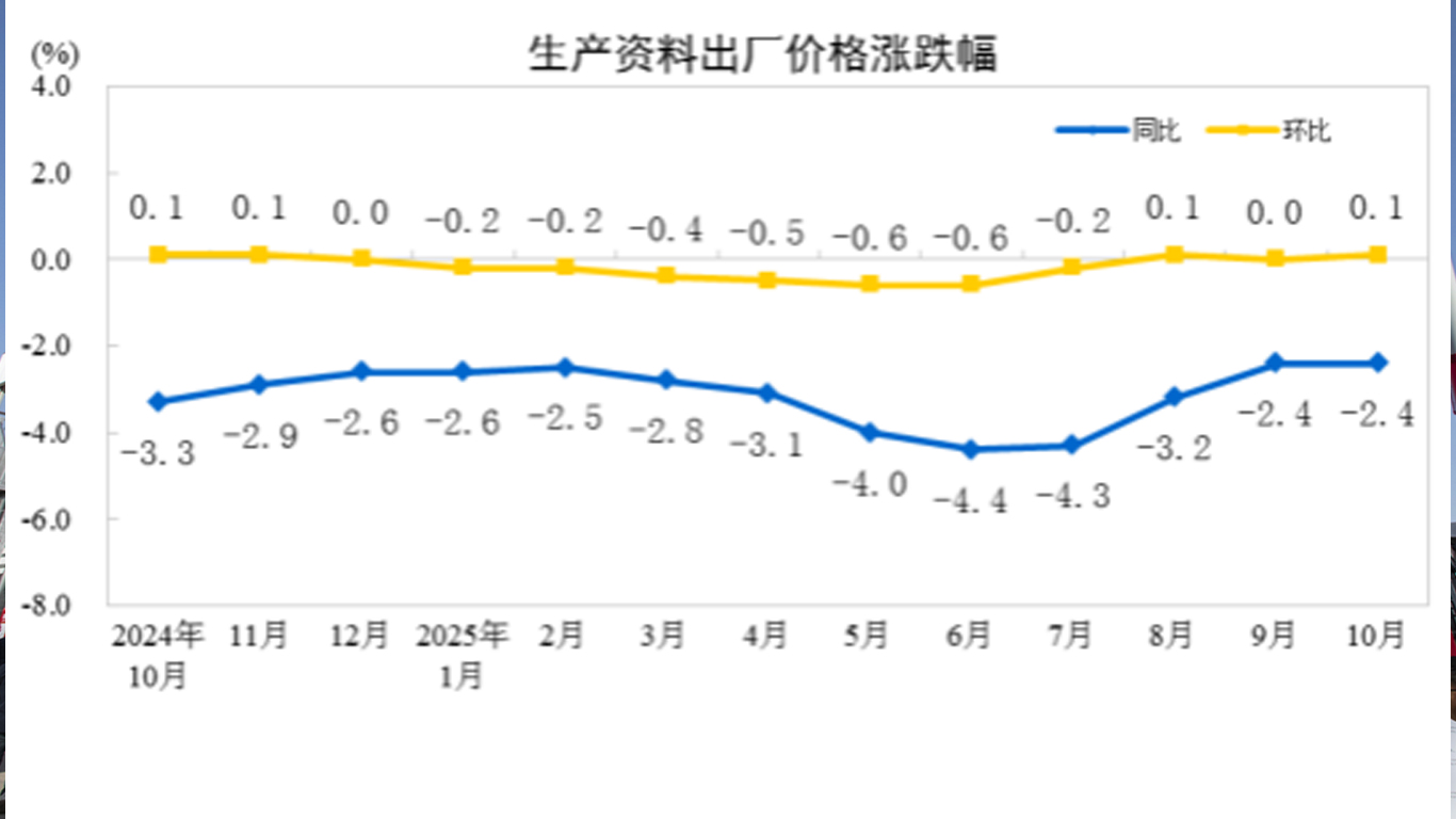 2025年10月份工业生产者出厂价格同比降幅继续收窄