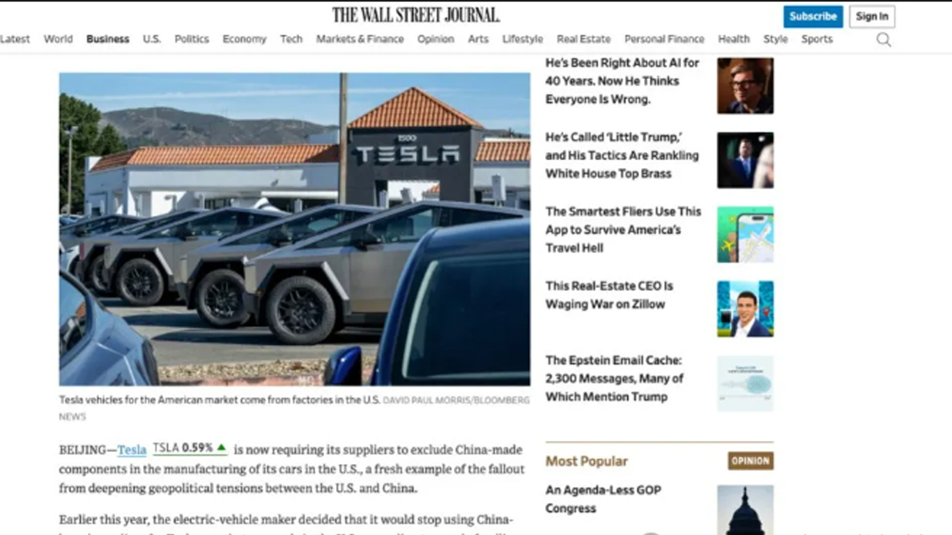 据《华尔街日报》最新报道,特斯拉已要求其全球供应商在为美国本土生产的车型中停用中国制造的零部件,并计划在未来1至2年内实现美制车型供应链的“完全非中国化”,目前特斯拉及其供应商已完成部分中国产零部件的替代工作。 特斯拉的“去中国化”战略并 ...